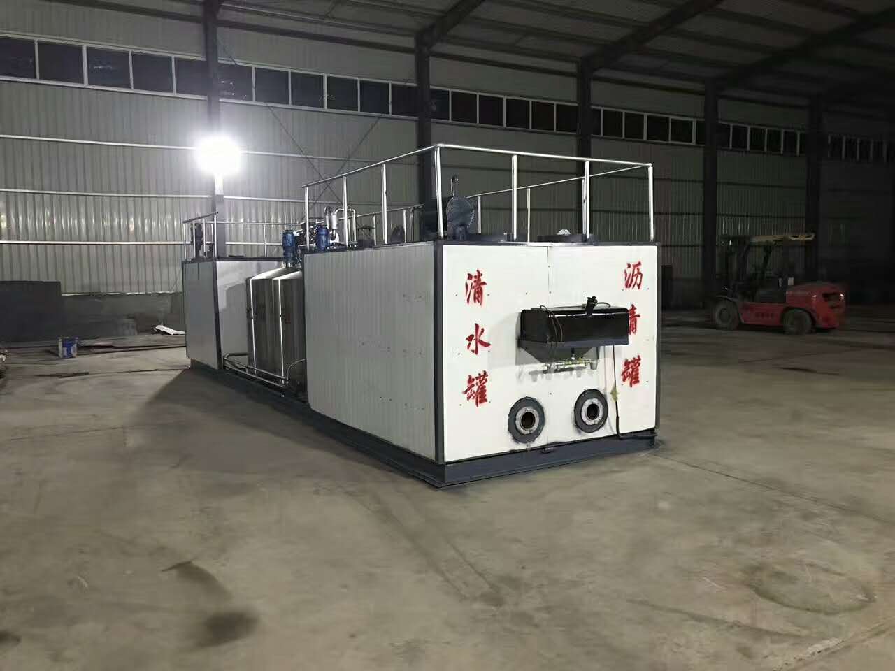 1、放置位置:改性瀝青設(shè)備應(yīng)該放置在平整的地方,前軸軸輪應(yīng)該用枕木固定,架空輪胎,是的機(jī)器在工作不亂動。